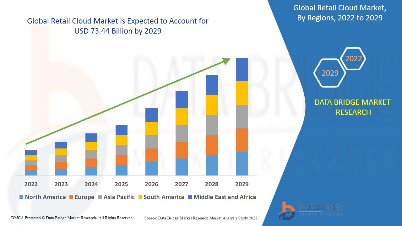 Data Bridge Market Research analyses that the retail cloud market will exhibit a CAGR of 19.2% for the forecast period of 2022-2029 and is expected to reach the market value of USD 73.44 billion by 2029.